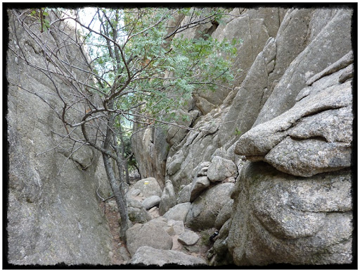 Sigo mi camino pasando por un estrechamiento debajo de una roca y aparece la