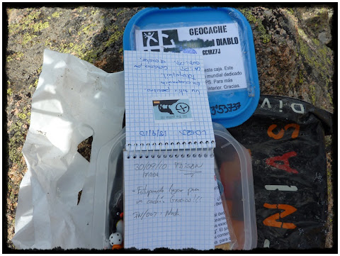 Siguiendo la dirección que me marca el GPS y un poco de instinto propio, voy por uno de los muchos caminos que existen en la Pedriza y consigo llegar hasta El Rocódromo y encontrar mi primer caché del día!!