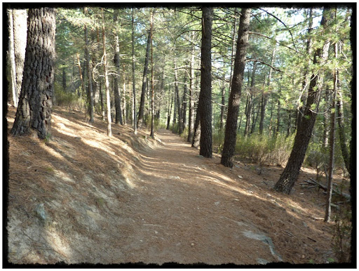 Sigo el camino disfrutanto de la sombra que me dan los arboles y llego hasta el collado de la dehesilla, donde encuentro el cuarto caché (qué dia más productivo!! jeje) y desde donde veo la subida que me espera